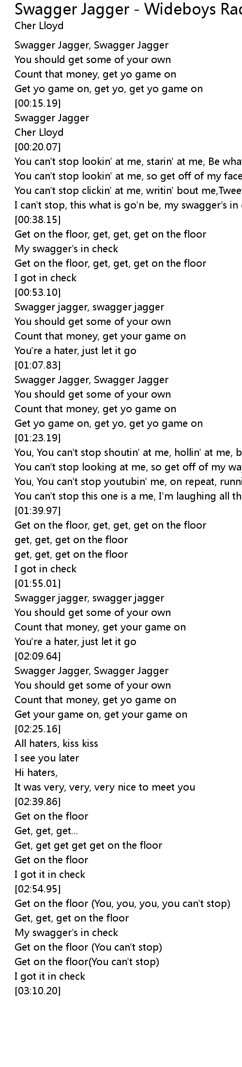 Swagger jagger, swagger jagger |