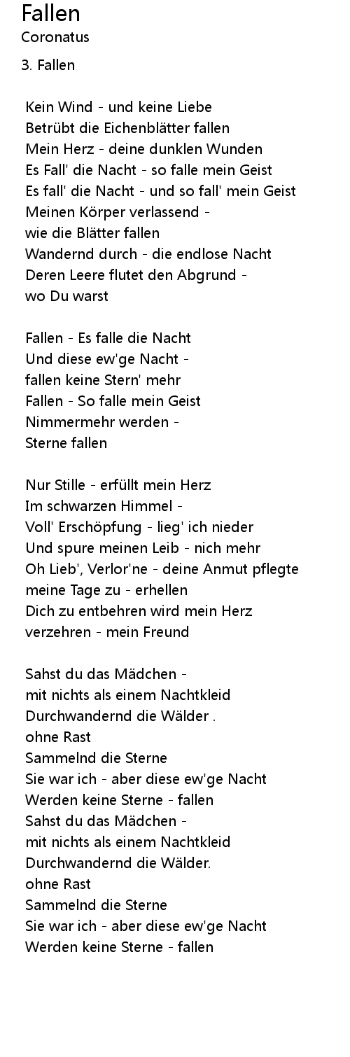 | Es fall' die Nacht - und so fall' mein Geist | |