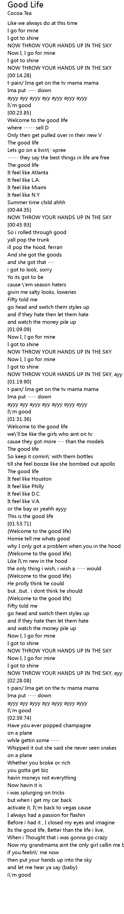 | [02:05.12] | (Welcome to the good life) |