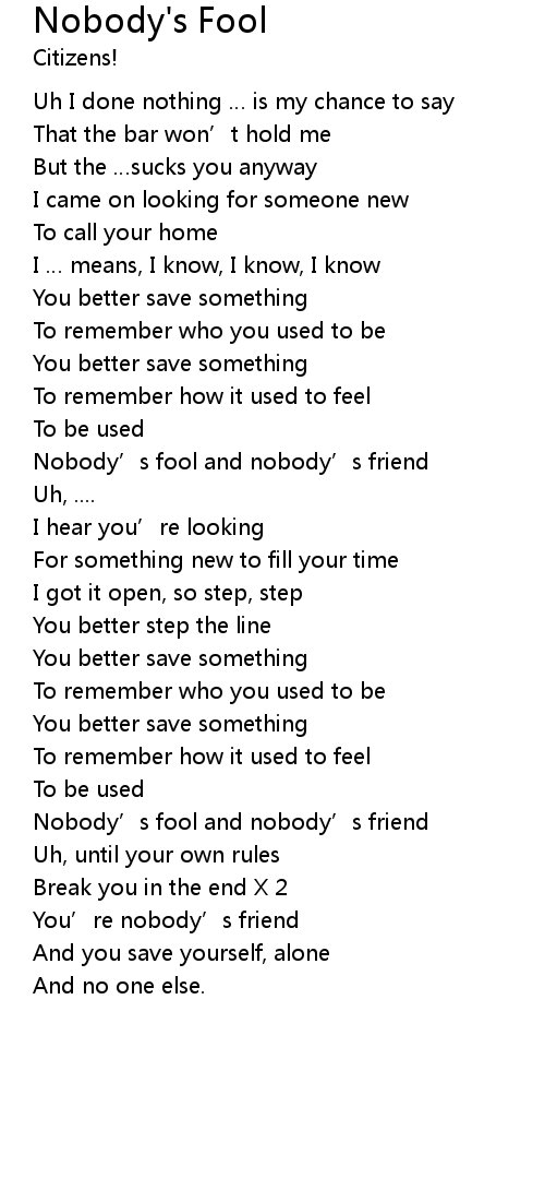 | Nobody' s fool and nobody' s friend | |