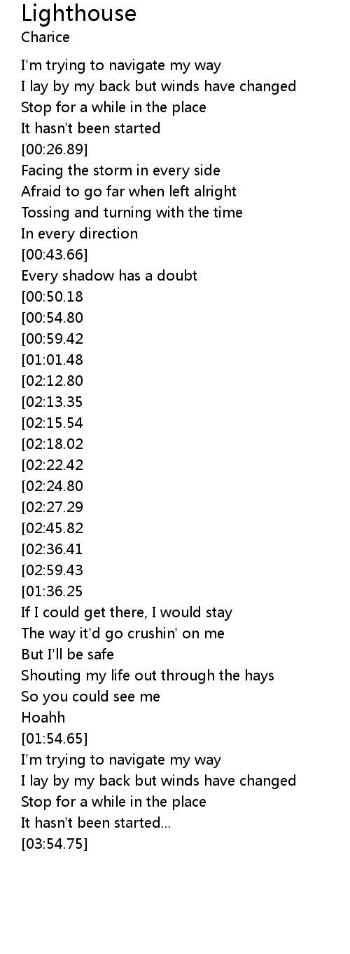 | [03:13.14][02:22.42][01:13.30] | It must be a lighthouse |