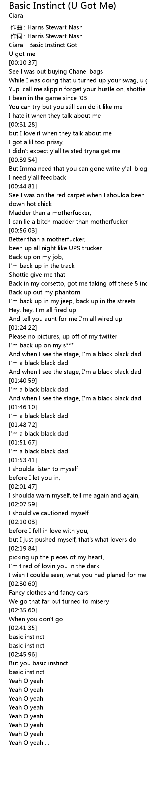 | [00:01.87] | Ciara Basic Instinct Got |