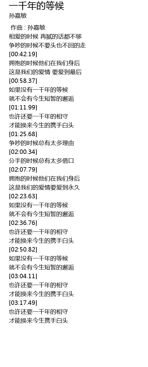 | [03:18.10] | 也许还要一千年的相守 |