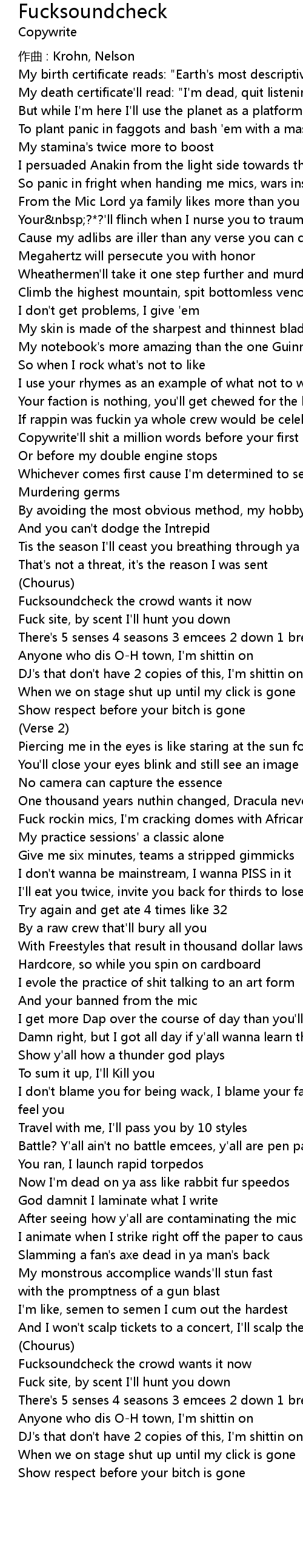 | Copywrite' ll shit a million words before your first sentence drops | |