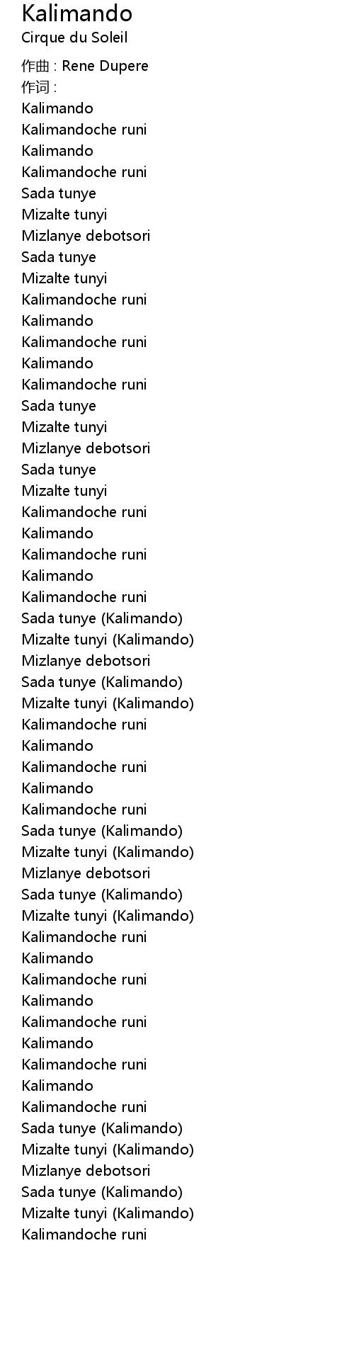 | 作曲 : Rene Dupere | |