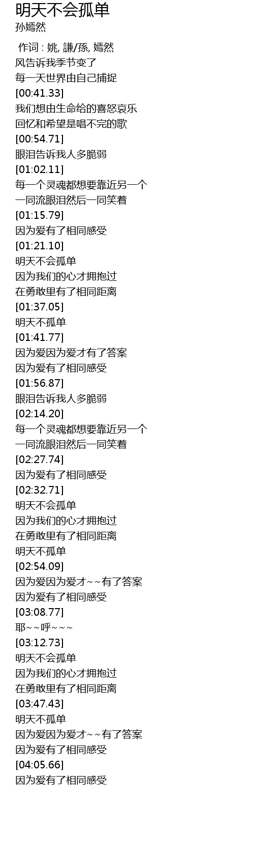 | [00:00.00] | 作词 : 姚, 謙/孫, 嫣然 |