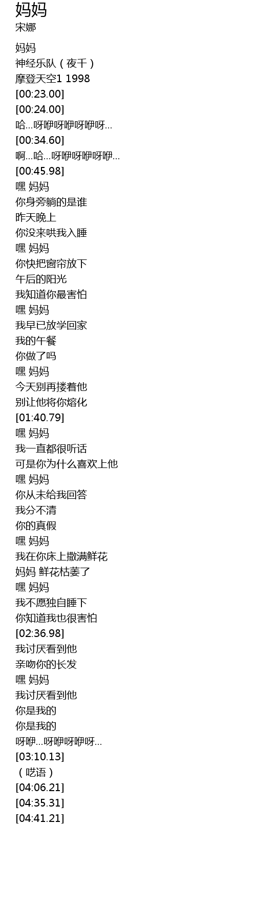 | [01:59.84] | 嘿 妈妈 |