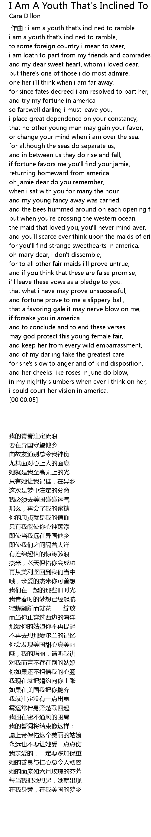 | [00:13.00] | i am a youth that' s inclined to ramble, |