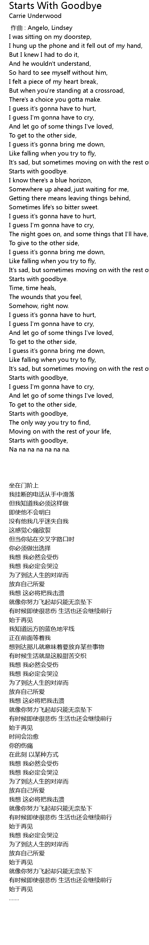 | Song | Starts With Goodbye |
