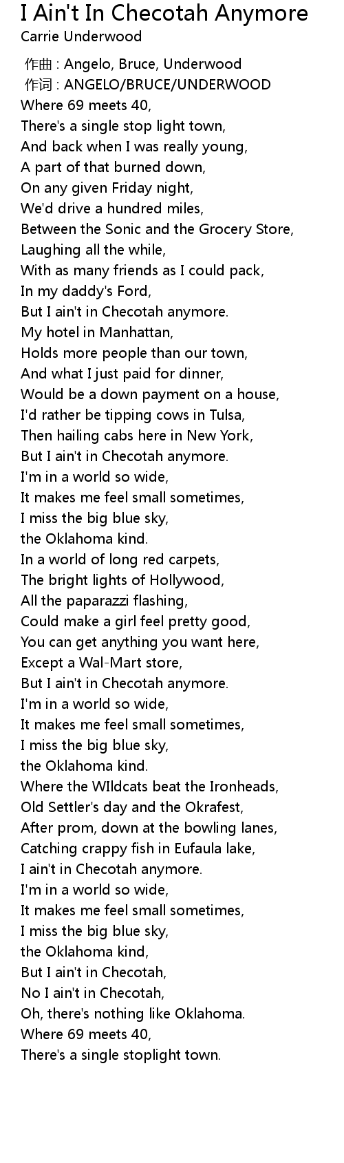 | [00:43.75] | But I ain't in Checotah anymore. |