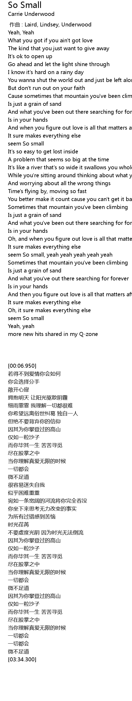 | [03:39.040] | more new hits shared in my Qzone |