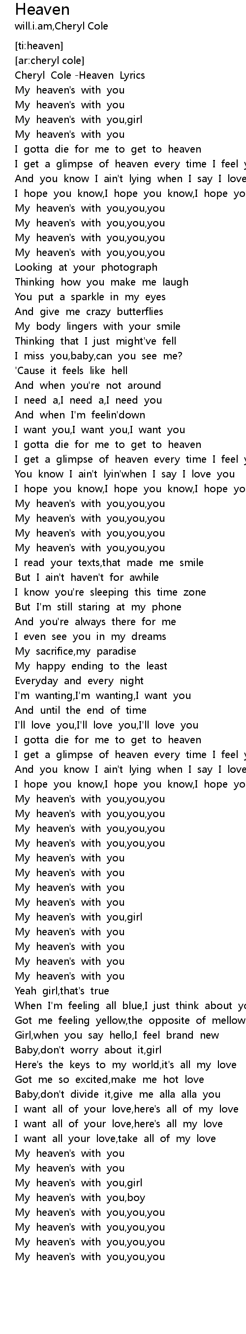 | [00:05.67] | Cheryl Cole -Heaven Lyrics |