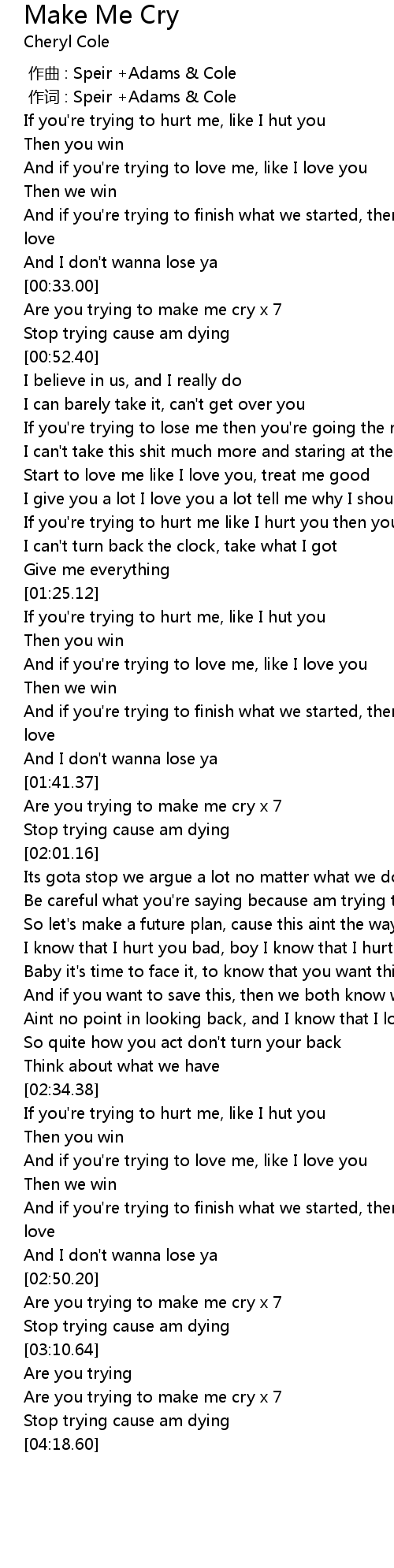 | [00:33.48] | Are you trying to make me cry x 7 |