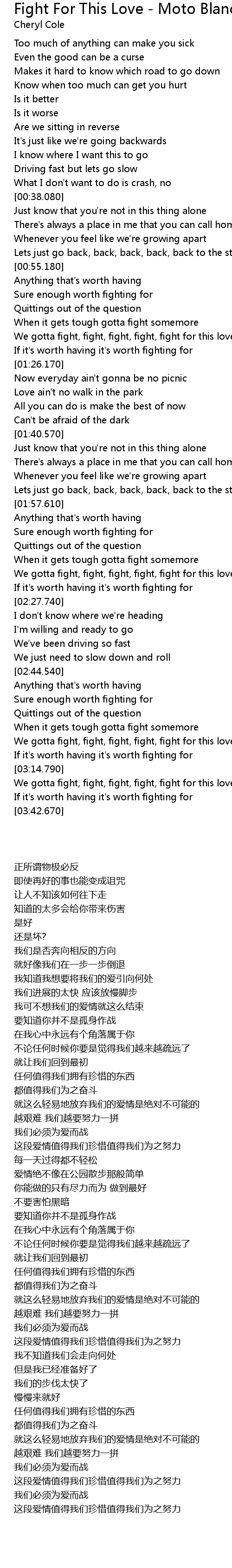 Fight For This Love - Moto Blanco Radio Edit Lyrics