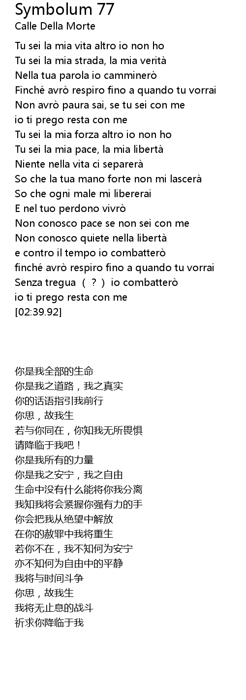 | [01:29.44] | Tu sei la mia pace, la mia libertà |