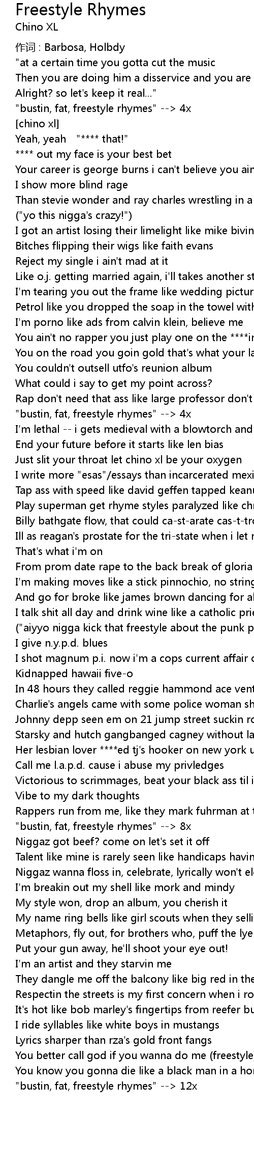 | " bustin, fat, freestyle rhymes" 12x |