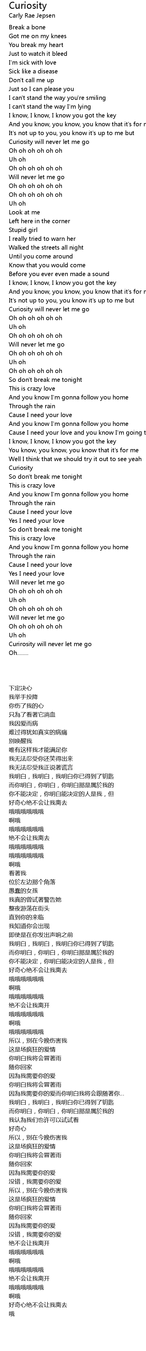 Curiosity Lyrics