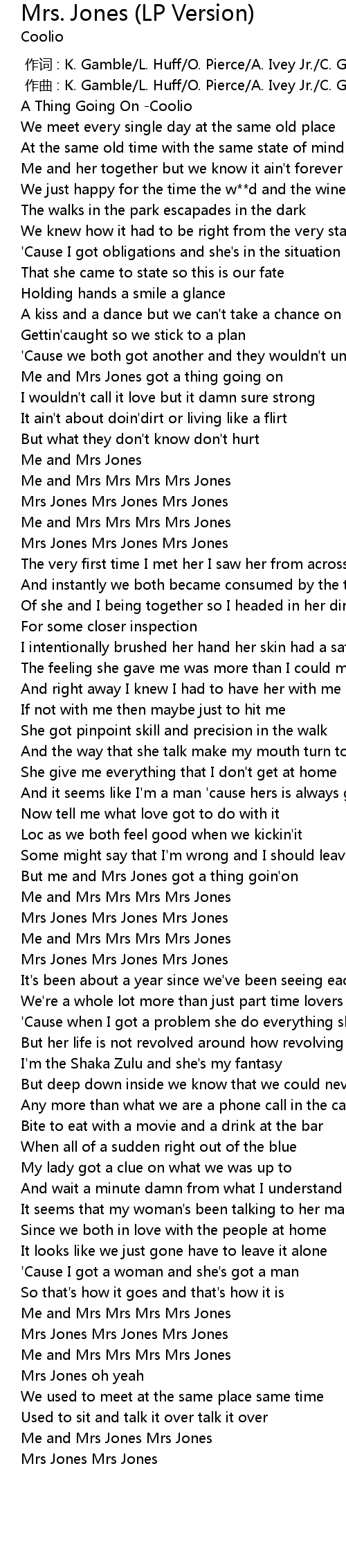 | [01:14.93] | Me and Mrs Mrs Mrs Mrs Jones |