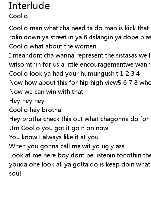 | Coolio man what'cha need ta do man is kick that oldgangsta shit man some of that rolin down ya street in ya 6 4slangin ya dope blastin on fools ya know | |
