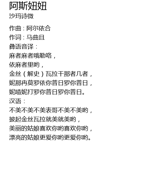 | měi lì de gū niáng xǐ huān nǐ yō xǐ huān nǐ yō, | |