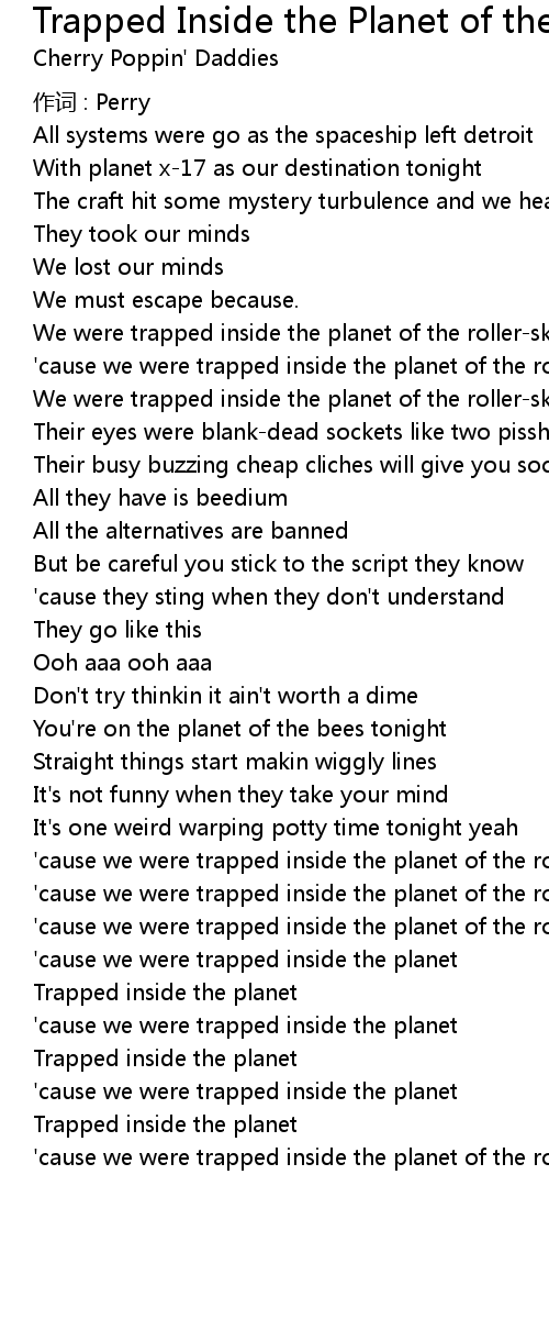 | Song | Trapped Inside the Planet of the Roller-skating Bees |