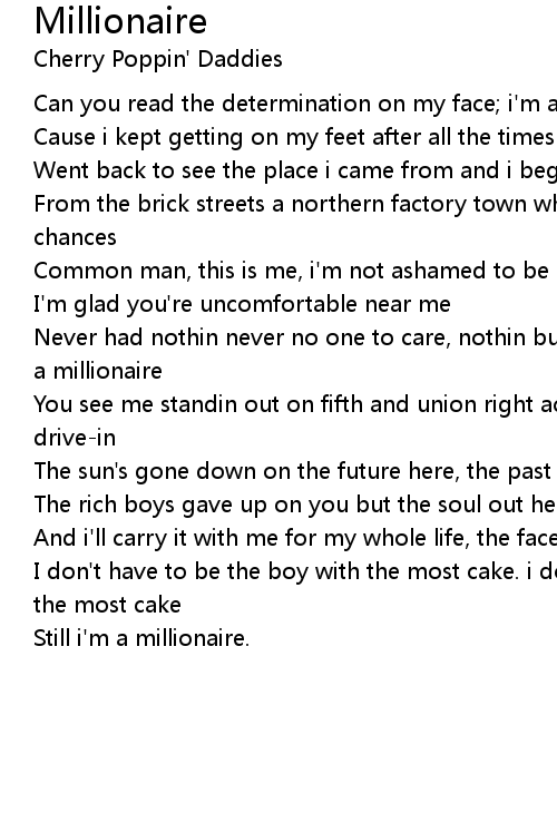 Never had nothin never no one to care, nothin but the wind in my hair, still i'm a millionaire