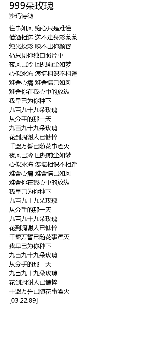 | [03:04.00] | 九百九十九朵玫瑰 |