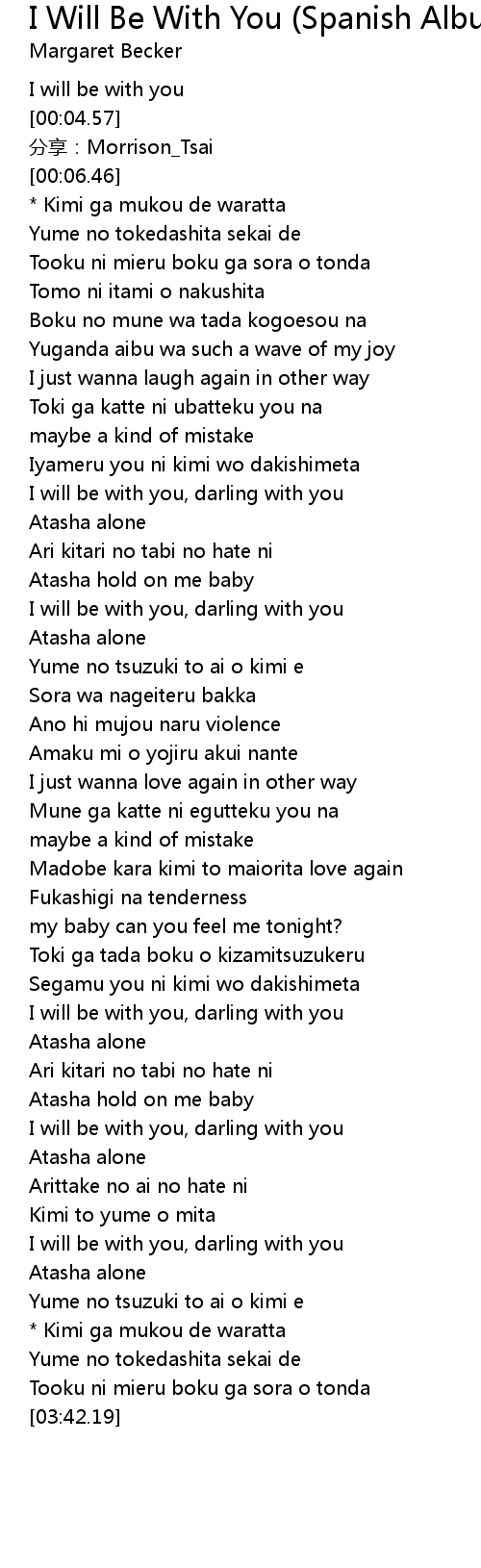 | [00:18.03] | * Kimi ga mukou de waratta |