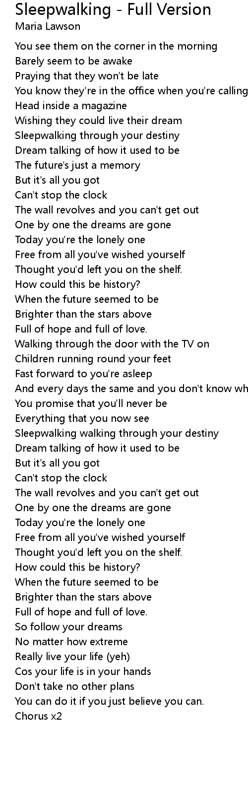 Sleepwalking walking through your destiny |