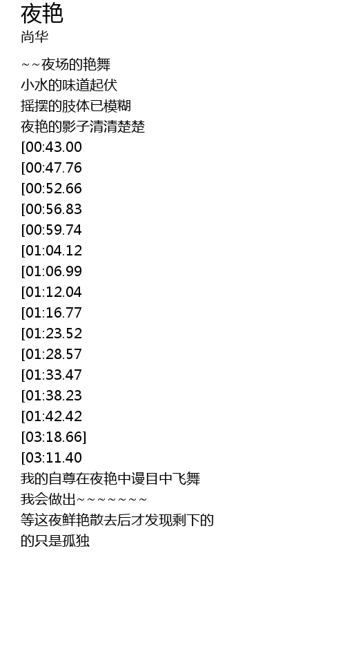 | [02:43.49][01:23.52] | 我在夜艳的放纵得便翩翩起舞 |