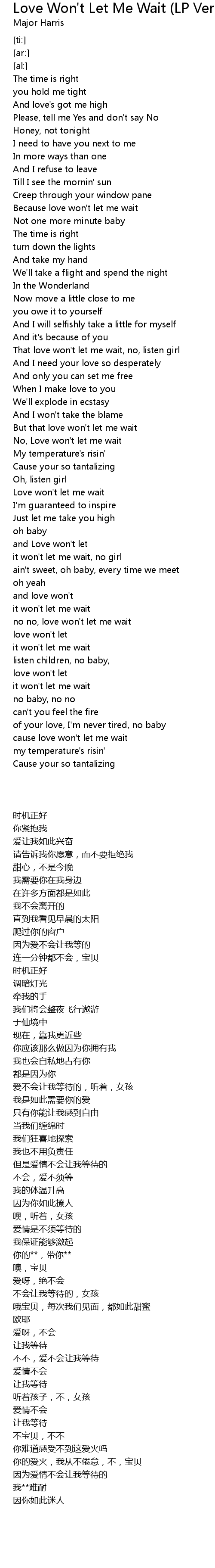 no no, love won't let me wait |