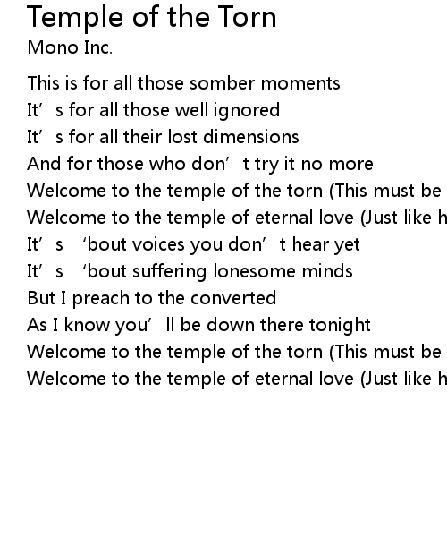 | Welcome to the temple of the torn (This must be heaven then) | |