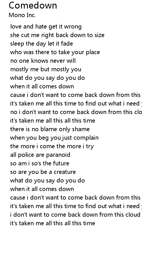 | [00:57.237] | no i don't want to come back down from this cloud |