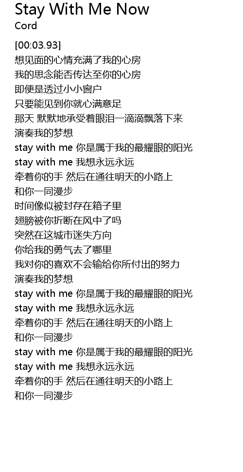 | [03:22.37] | stay with me wǒ xiǎng yǒng yuǎn yǒng yuǎn |
