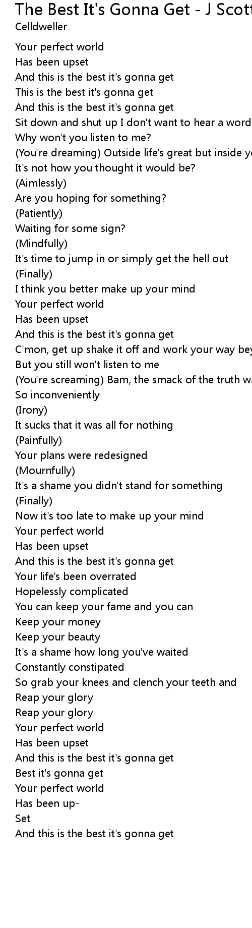And this is the best it's gonna get |