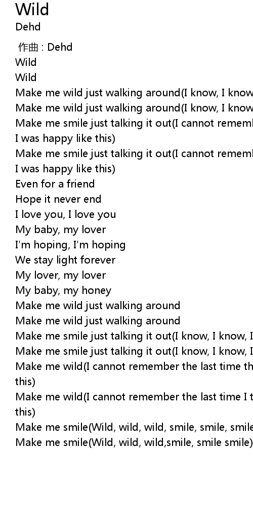 | [01:40.18] | Make me smile Wild, wild, wild, smile, smile, smile |