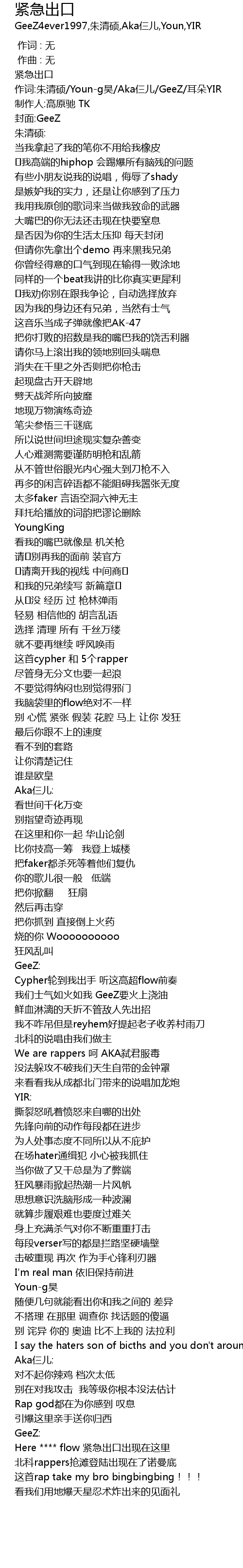 | [01:37.654] | zhè shǒu cypher hé 5 gè rapper |