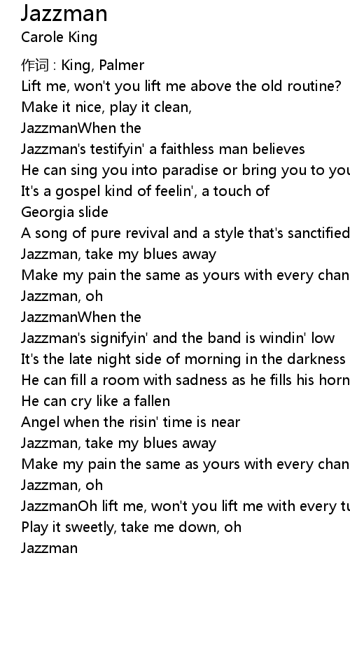 | JazzmanOh lift me, won' t you lift me with every turn around? | |