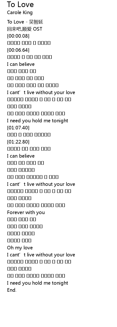 | [00:00.00] | To Love - 吴智延 |