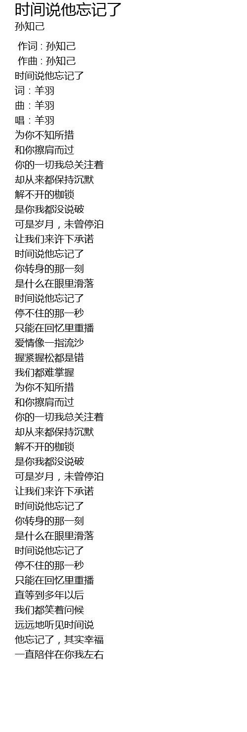 | [00:01.876] | shí jiān shuō tā wàng jì le |