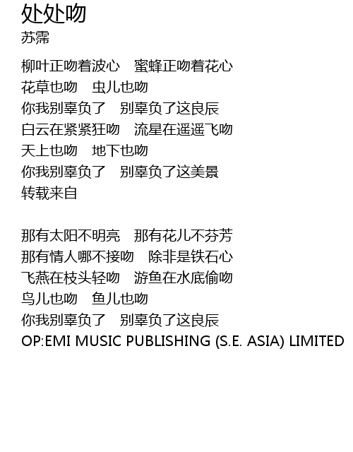 | OP: EMI MUSIC PUBLISHING S. E. ASIA LIMITED |