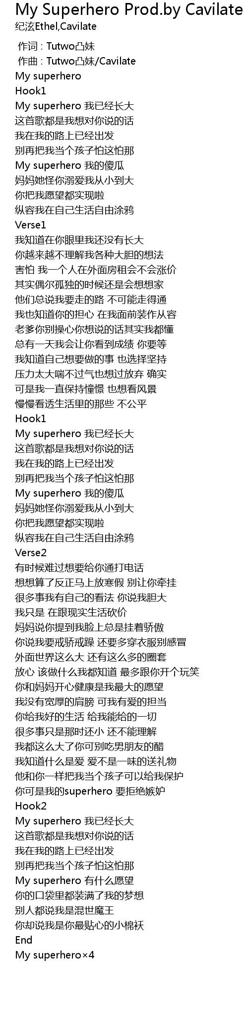 | [00:12.900] | My superhero wǒ yǐ jīng zhǎng dà |