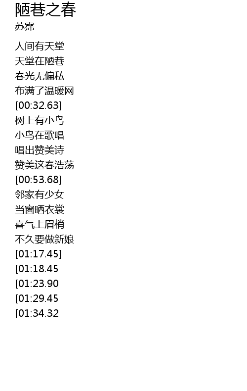 | [02:02.17][01:18.45] | 春色在陋巷 |
