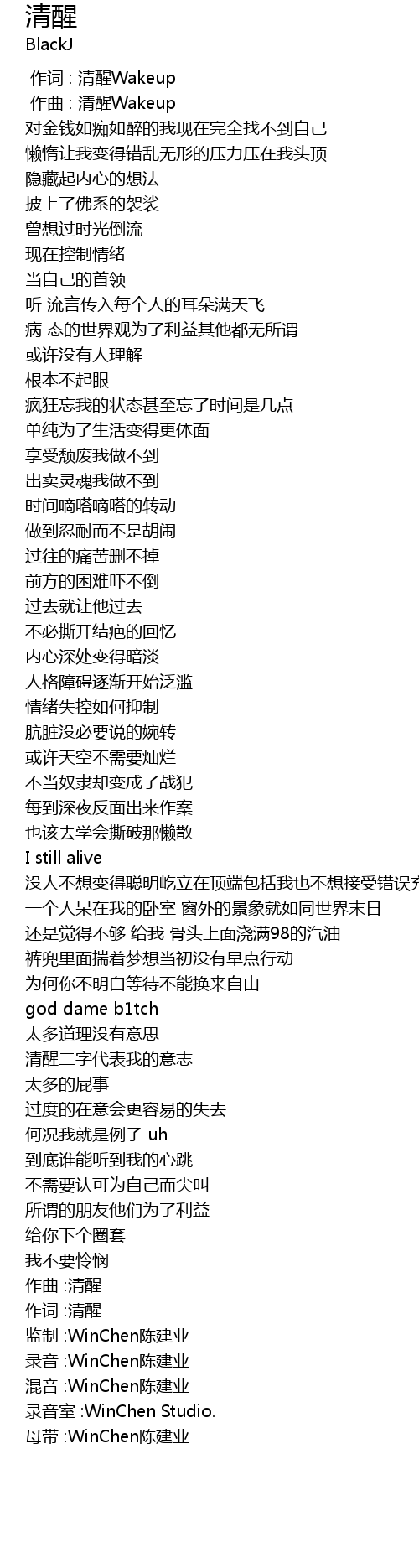 | [00:00.000] | 作词 : 清醒Wakeup |