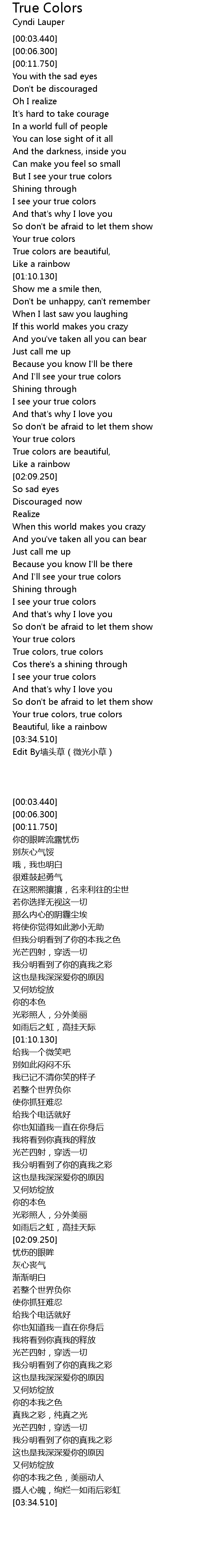 | [02:53.090] | Your true colors |
