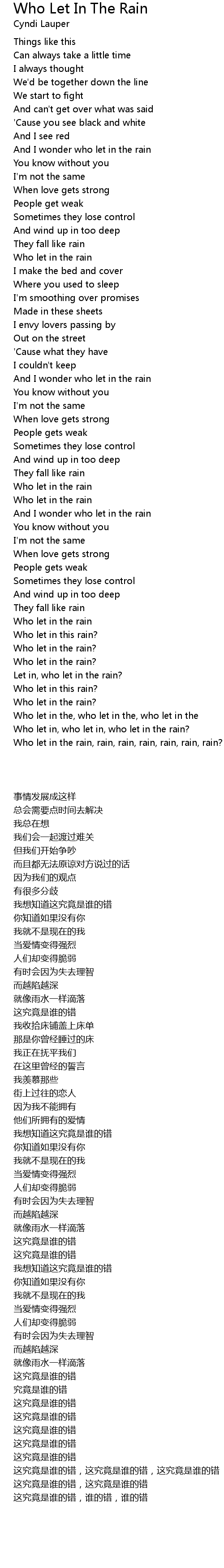 Who let in the rain, rain, rain, rain, rain, rain, rain? |
