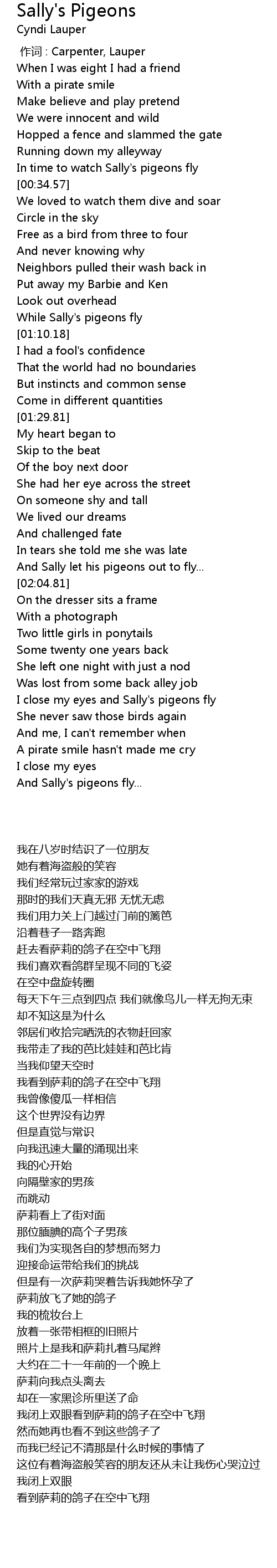 | [02:49.40] | I close my eyes and Sally' s pigeons fly |