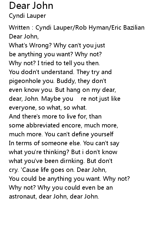| cry. 'Cause life goes on. Dear John, | |