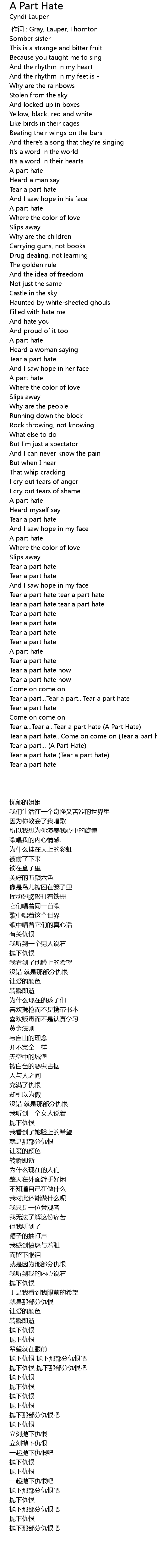 | [04:25.800] | Tear a... Tear a... Tear a part hate A Part Hate |