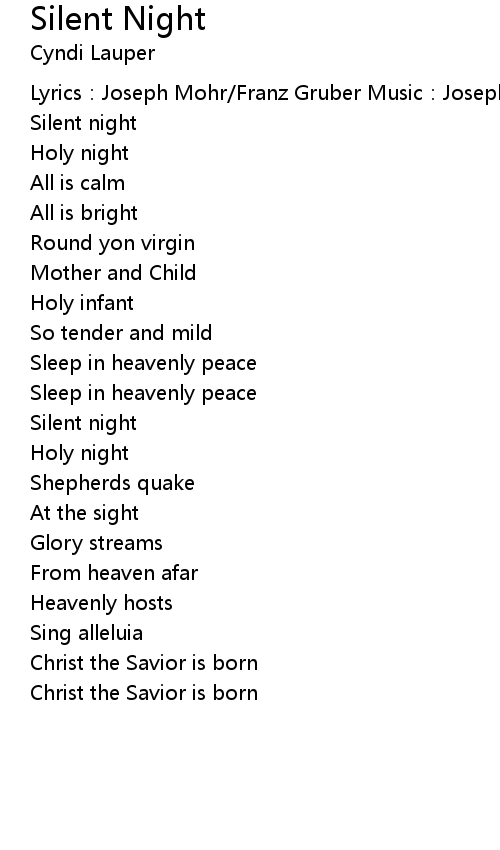 | Lyrics: Joseph Mohr Franz Gruber Music: Joseph Mohr Franz Gruber | |